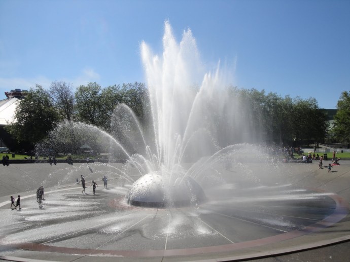 All surrounded by beautiful dancing fountains.