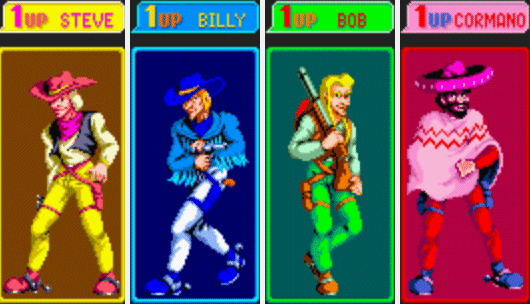 The game, which is set in a fanciful version of the American Old West, revolves around four bounty hunters named Steve, Billy, Bob, and Cormano who are out to claim rewards given for eliminating the most wanted outlaws in the West. At the beginning of each stage the player is shown a wanted poster, showing the criminal, the reward for stopping them, and the line “Wanted dead or alive”.