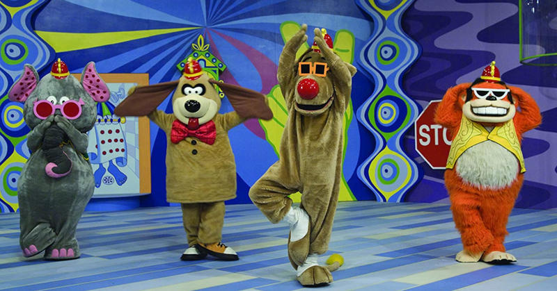 Bass: a self-aware speaker, also with limbs and a pair of antennae. His most famous appearance was in bit in which Bass is playing corny elevator music (or alternatively corny country music) and Big Stalks comes along and kicks him on the butt, changing the music to something more funky.