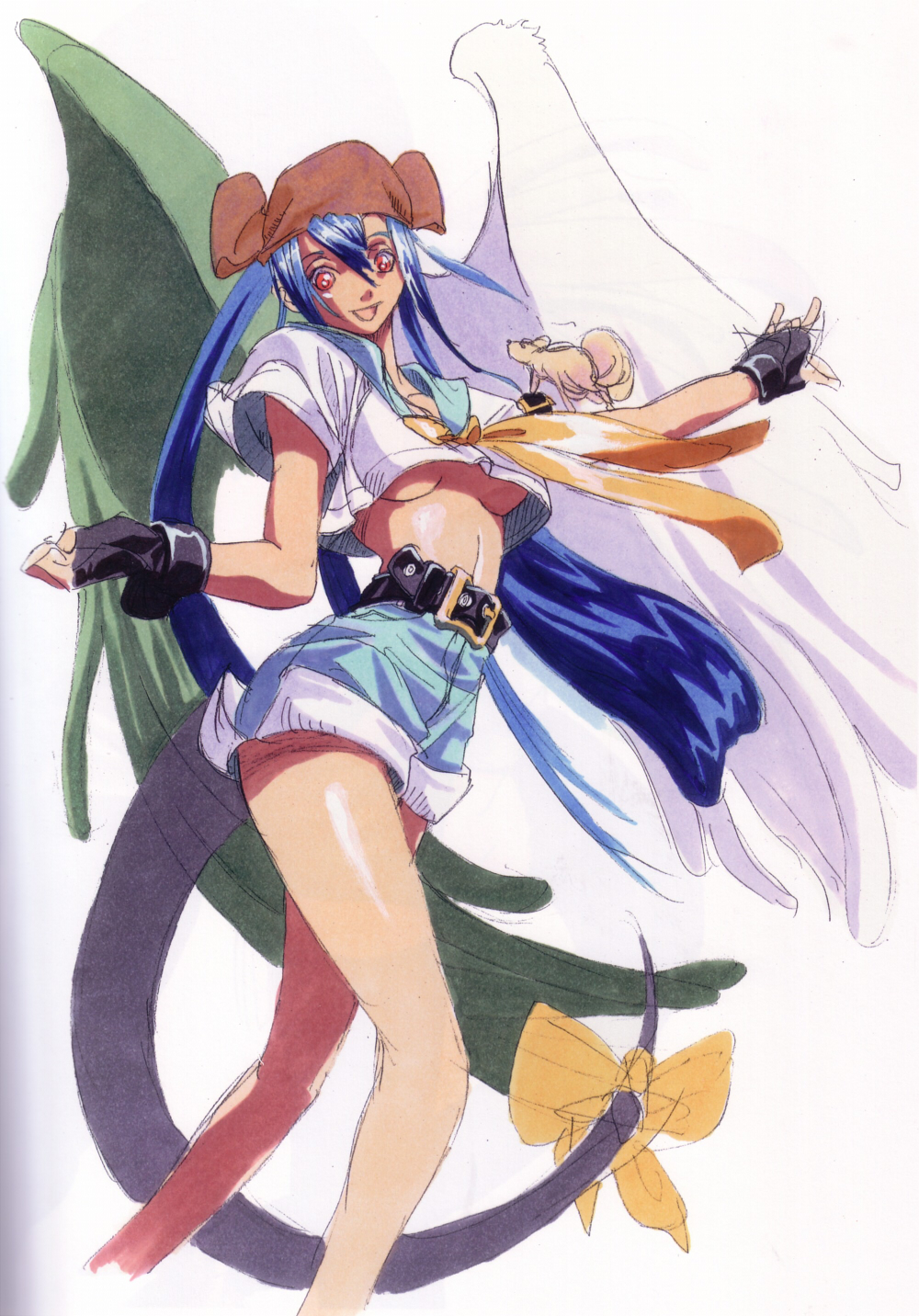 Several bikini-clad women can be seen in the background; among them are the Judgment Girls from the Street Fighter III games, as well as Tiffany Lords and Hinata Wakaba from the Rival Schools series. I’m not a crossover fanatic, but I do think it’s kind of cool how Street Fighter, Rival Schools, Darkstalkers and Final Fight all take place in the same universe.